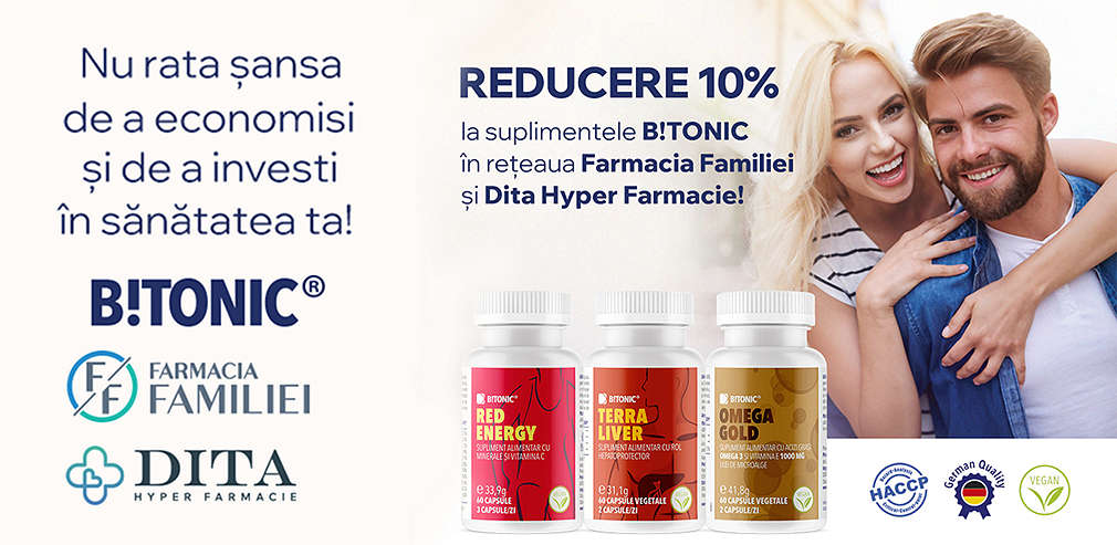 Beneficiază de 10% reducere la suplimentele BITONIC în rețeaua Farmacia Familiei și în Hyper Dita!