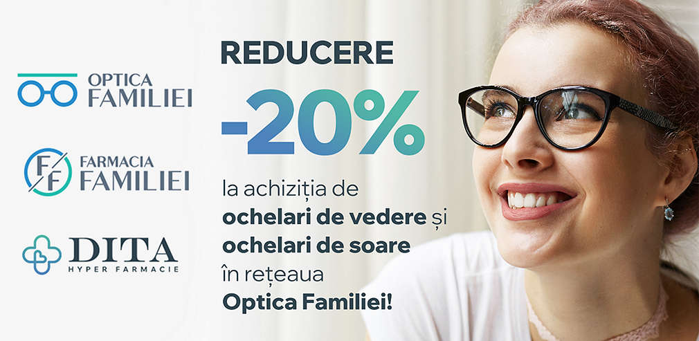 Beneficiază de 20% reducere la achiziția de ochelari de vedere și ochelari de soare în rețeaua Optica Familiei!