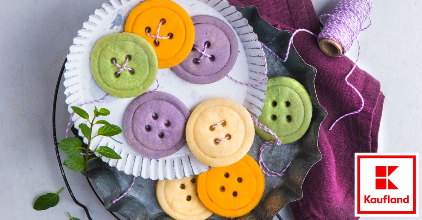 Cu toții apreciem deserturile de casă. Această rețetă arată atât de bine, încât preparatele se pot folosi sub formă de cadou. Nu ai nevoie decât de câteva ingrediente clasice, adică zahăr, făină, unt și ou. Folosește colorant alimentar pentru a da dulciurilor diverse culori. Pentru a transforma biscuiții în nasturi, ai nevoie de o formă rotundă pentru tăiat (sau de mai multe, de dimensiuni diferite) și de paie. Pentru un aspect perfect, îi poți decora cu ață, pe care o vei introduce în găurile nasturilor. Sfat: Dacă vrei să aibă un aspect marmorat, folosește mai puțin colorant alimentar și oprește-te mai devreme din frământat, astfel încât culoarea să nu fie perfect uniformă. Imediat ce culoarea începe să se disperseze ușor, oprește-te din frământat și întinde aluatul pe o suprafață plană pentru a-l tăia.