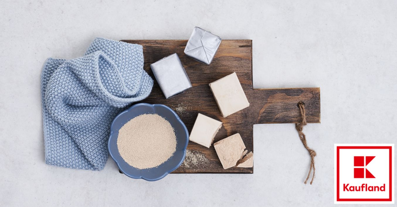 Datorită drojdiei congelate, vei putea face preparate delicioase oricând dorești. Poți adăuga liniștit câteva cuburi de drojdie proaspătă pe lista de cumpărături – dacă le congelezi, vor rezista câteva luni. Îți recomandăm să tai cuburile în alte cuburi mai mici, de câte 5 grame fiecare, înainte de a congela drojdia. Astfel, vei putea adăuga mai ușor în aluat cantitatea de drojdie proaspătă congelată necesară. La congelare, ai în vedere ca bucățile de drojdie să nu fie prea apropiate una de cealaltă, deoarece se vor lipi între ele și îți va fi greu să le desfaci. Poți folosi orice recipient dorești: pungi pentru congelator, cutii din metal, borcane de sticlă.