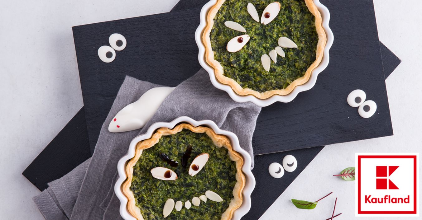 Vrei o mâncare mai sățioasă, perfectă pentru Halloween? Sigur: poți pregăti burgeri sau un quiche. Avem chiar și rețete de brioșe de Halloween, care, împreună cu burgerii și quiche, vor forma un trio perfect. De ce sunt aceste preparate atât de practice? Deoarece sunt perfecte pentru a fi mâncate cu mâna. Datorită decorațiunilor specifice, vor fi apreciate atât de copii, cât și de adulți. Încă un sfat: Quiche-ul se poate prepara la cuptor alături de brioșe, pentru a reduce consumul de energie și de timp. În timp ce acestea se coc, poți pregăti ingredientele pentru burgeri. Apoi, odată ce quiche-ul și brioșele sunt gata, poți coace la cuptor felii delicioase de bacon pentru burgeri în formă de monștri.