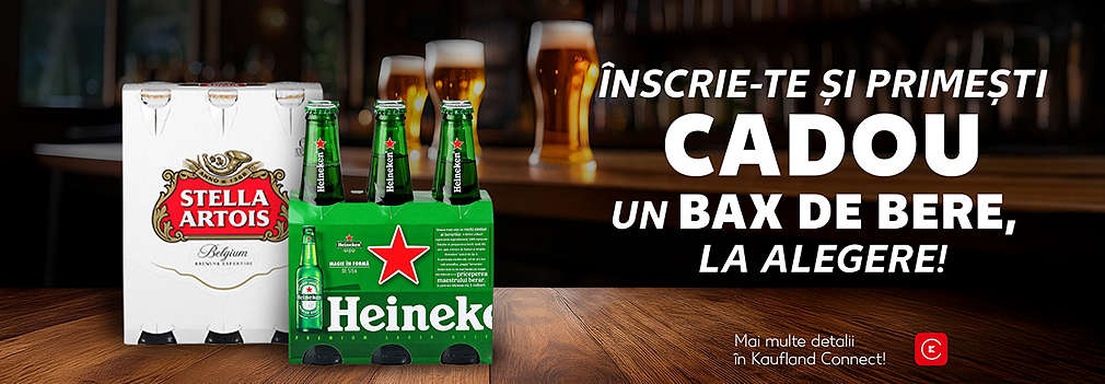 Ziua de 9 martie este dedicată bărbaților din Kaufland pe care ne dorim să-i cinstim și anul acesta cu un bax de bere la alegere pentru fiecare: Stella Artois 5% sau Heineken 5%, 6 x 0,33L sticlă nereturnabilă sau purtătoare de garanție (cu eticheta „Ambalaj cu garanție”).