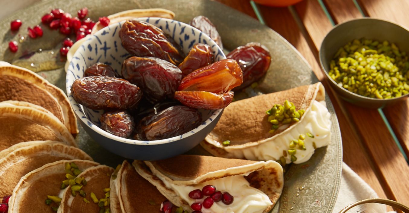 Crema se bate omogen cu un tel, se încorporează mascarpone și se toarnă într-un poș cu vârf în formă de stea mare. Crema se toarnă în câte o jumătate de clătită și se presară, după gust, cu sâmburi de rodie și fistic. Clătitele se pliază peste cremă. Curmalele se potrivesc foarte bine cu acestea.