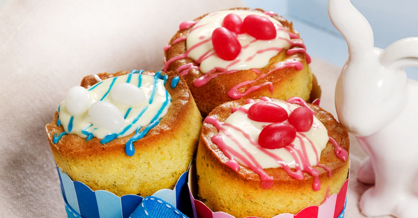 Ciocolata albă se toacă grosier și se topește pe un pat de apă fierbinte. Untul, zahărul, zahărul vanilat și coaja rasă de lămâie se bat până se obține o spumă densă. Se încorporează ouăle unul câte unul. Se cerne peste aceasta făină și praf de copt și se amestecă cu fisticul, migdalele, laptele și ciocolata topită. Aluatul se toarnă în pahare mici (de aprox. 150 ml, Ø 8 cm, înălțime 4 cm) sau în forme de hârtie și se coace în cuptorul preîncălzit la 180 °C (gaz: treapta 3, convecție 160 °C) timp de cca 25-30 de minute.