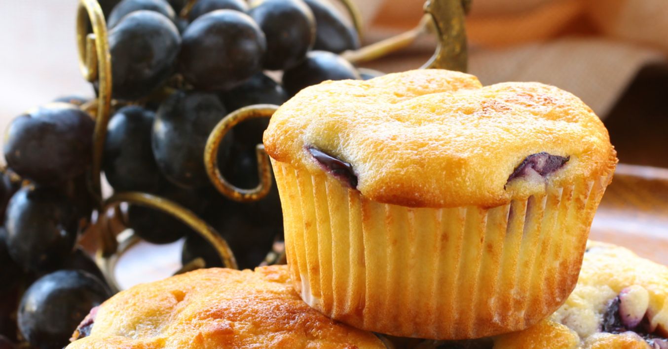Se pun boabe de struguri spălate și uscate în fiecare formă. Se toarnă compoziție cât jumătate din formă și se coc 35 minute la foc moderat.