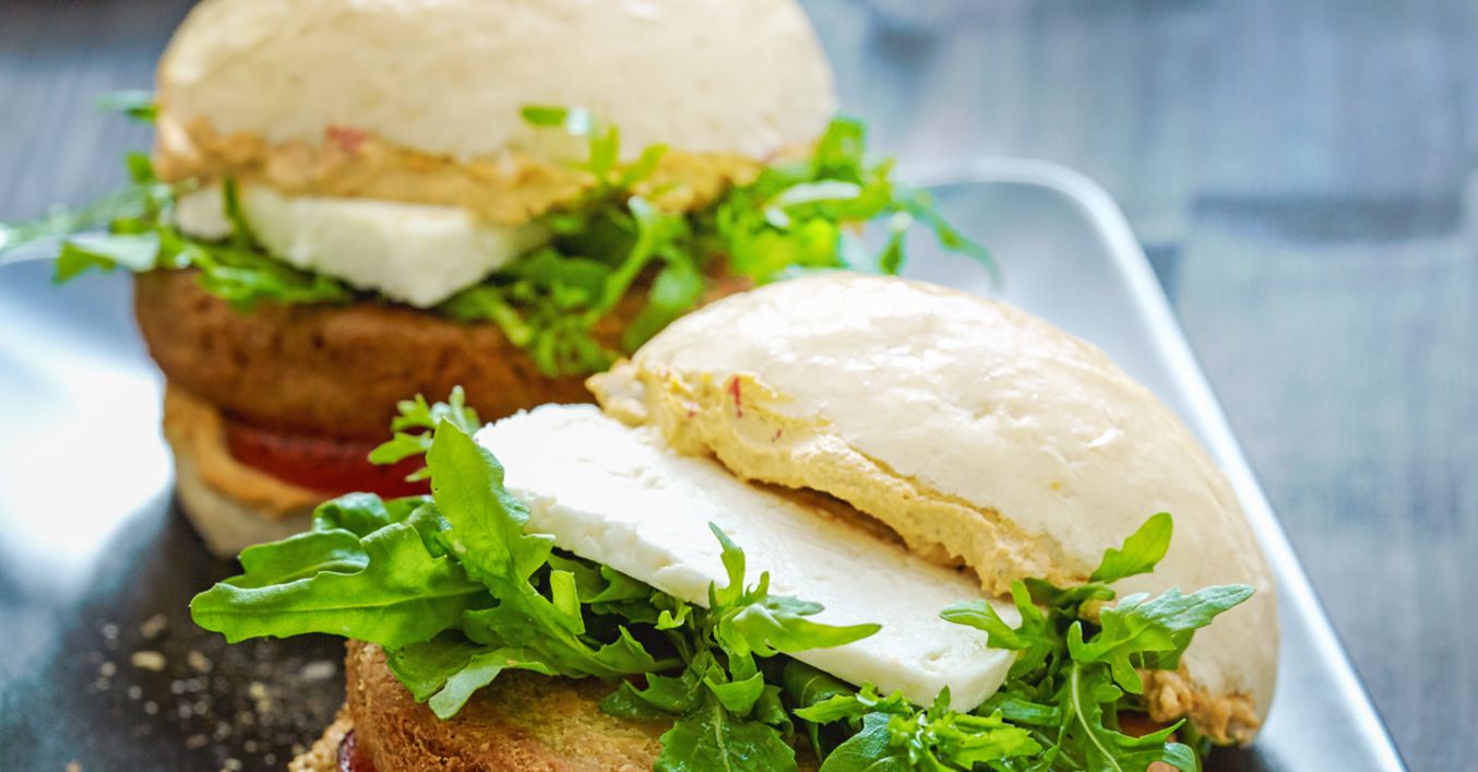 Se taie pâinicile coapte, se ung ambele jumătăți cu pastă tartinabilă, pe jumătățile inferioare se așază felii de roșii, chiftelele de năut, rucola și brânză, apoi se acoperă cu jumătățile superioare și se servesc.