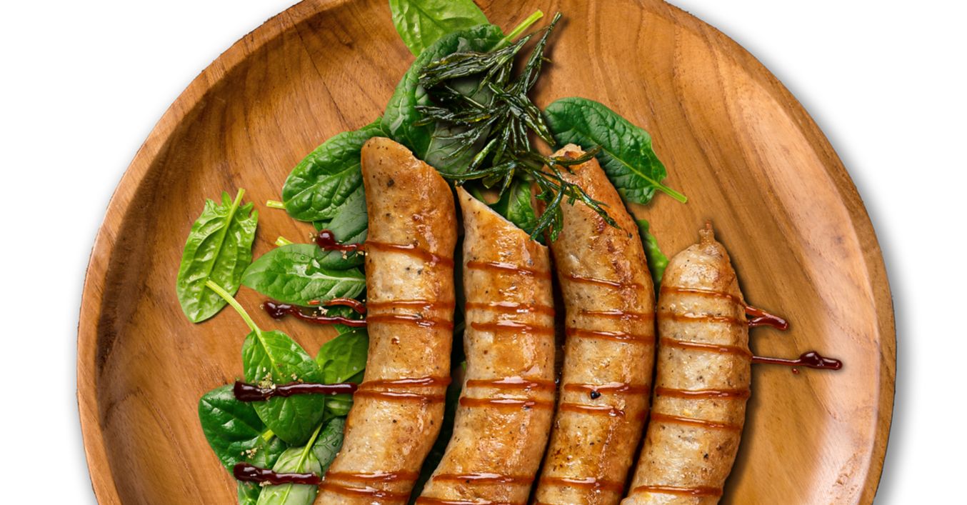 Cârnați de porc cu frunze de spanac