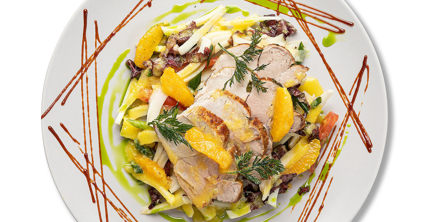 Carnea și garnitura se servesc, împreună calde, cu sos Red Thai Curry pe deasupra.