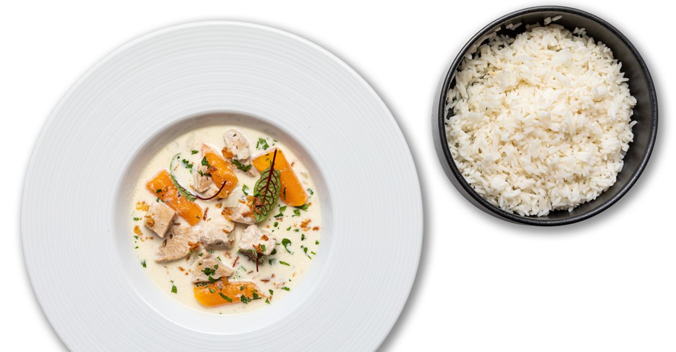 Ceafă de porc fără os în sos alb cu orez