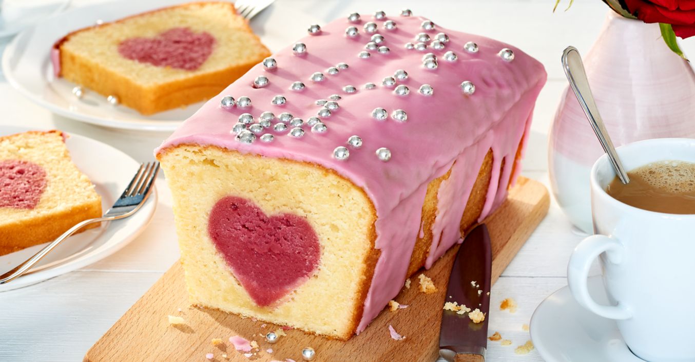Toarnă aluatul într-o formă de chec și pune la cuptor pentru 55-60 de minute. După ce se coace, lasă checul roz să se răcească, după care taie-l în felii groase. Decupează inimioare din fiecare felie de chec.