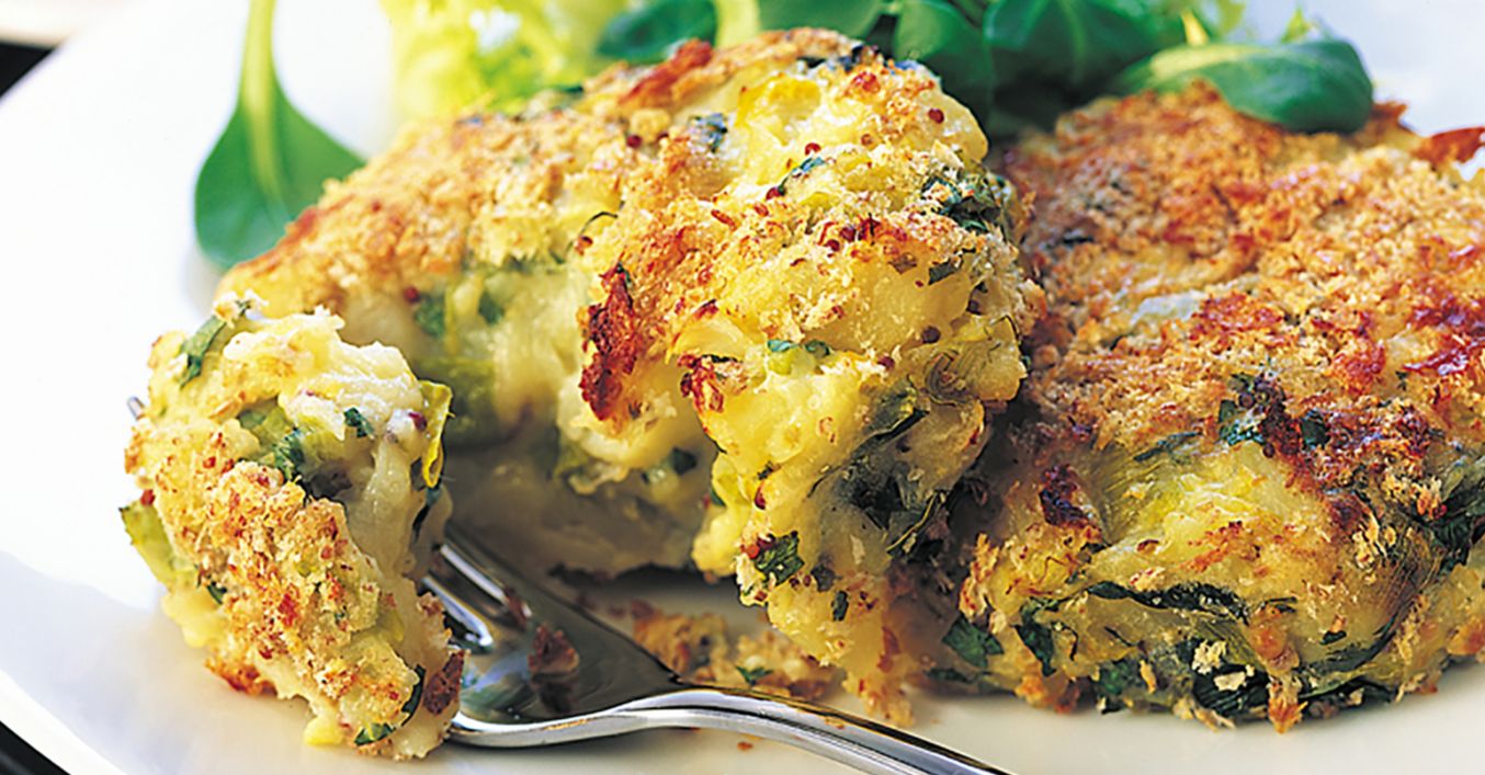 Când cartofii sunt destul de reci că să poată fi mânuiți, se descojesc și se pun într-un castron mare, împreună cu prazul. Se sfărâmă legumele cu o furculiță, se adaugă laptele, muștarul, brânza, pătrunjelul și cimbrul și se amestecă bine.