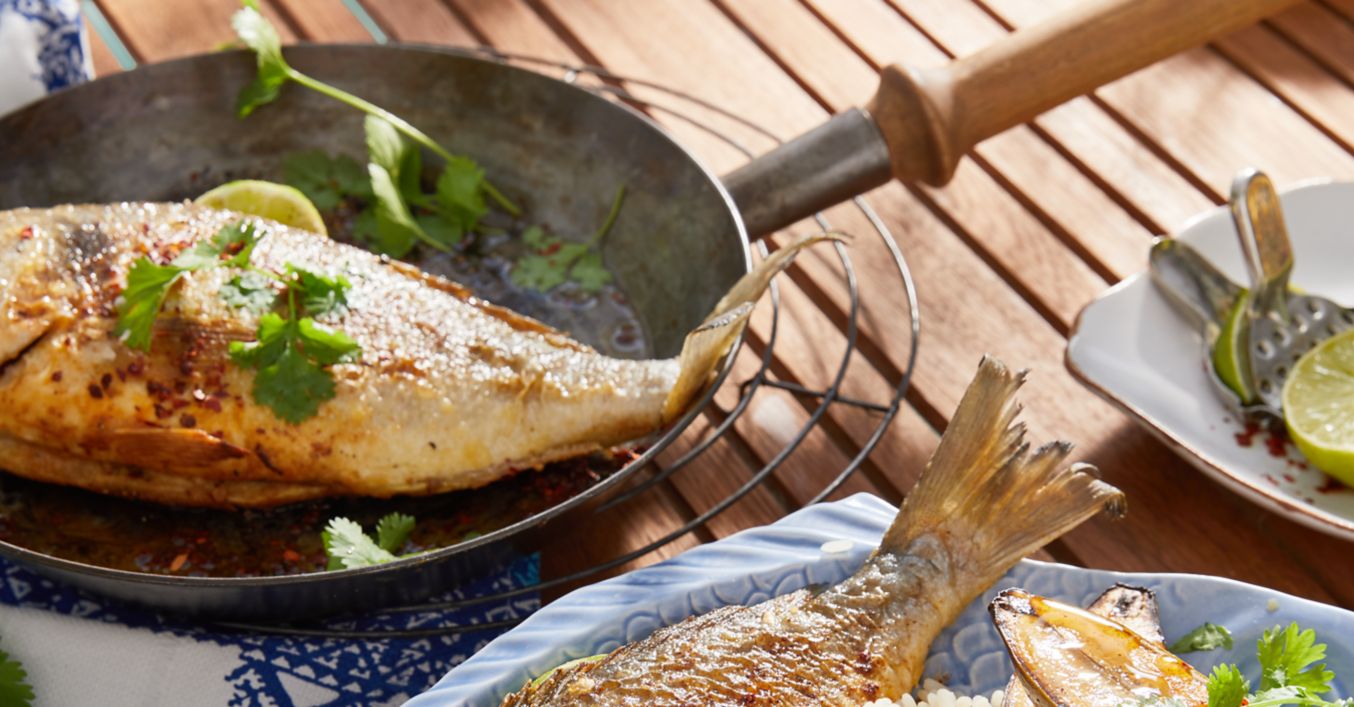 Doradele se condimentează în interior și exterior cu pudra de chili, sare, coajă și suc de lămâie verde, păstrând aproximativ 1 lingură. Praful de copt se amestecă cu făina, apoi se tăvălesc doradele prin acest amestec. Se scutură făina în exces. Se încinge uleiul într-o tigaie mare și se prăjesc doradele în acesta, întorcându-le de pe o parte pe alta, aproximativ 5 minute.