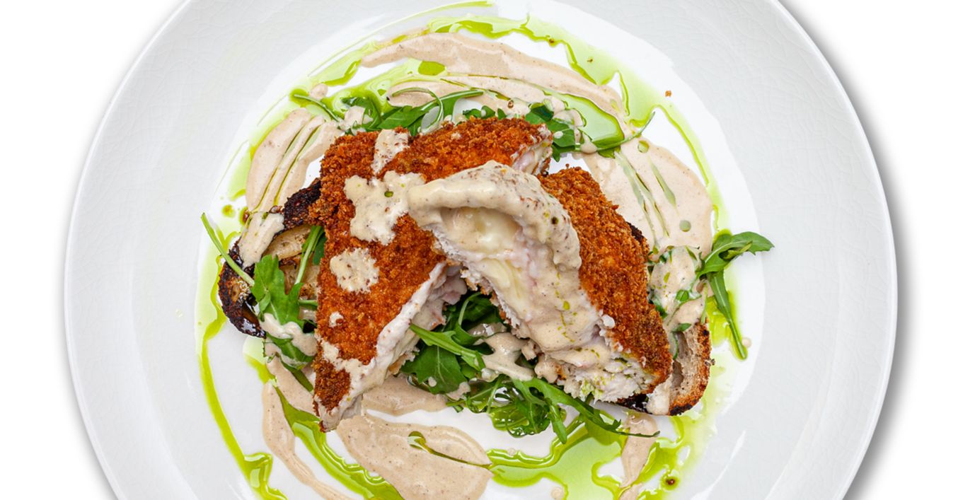 Pentru o savaoare deosebită cotletul de porc Cubano se servește pe un pat de ruccola alături de castraveți murați și asezonat cu maioneză din belșug.