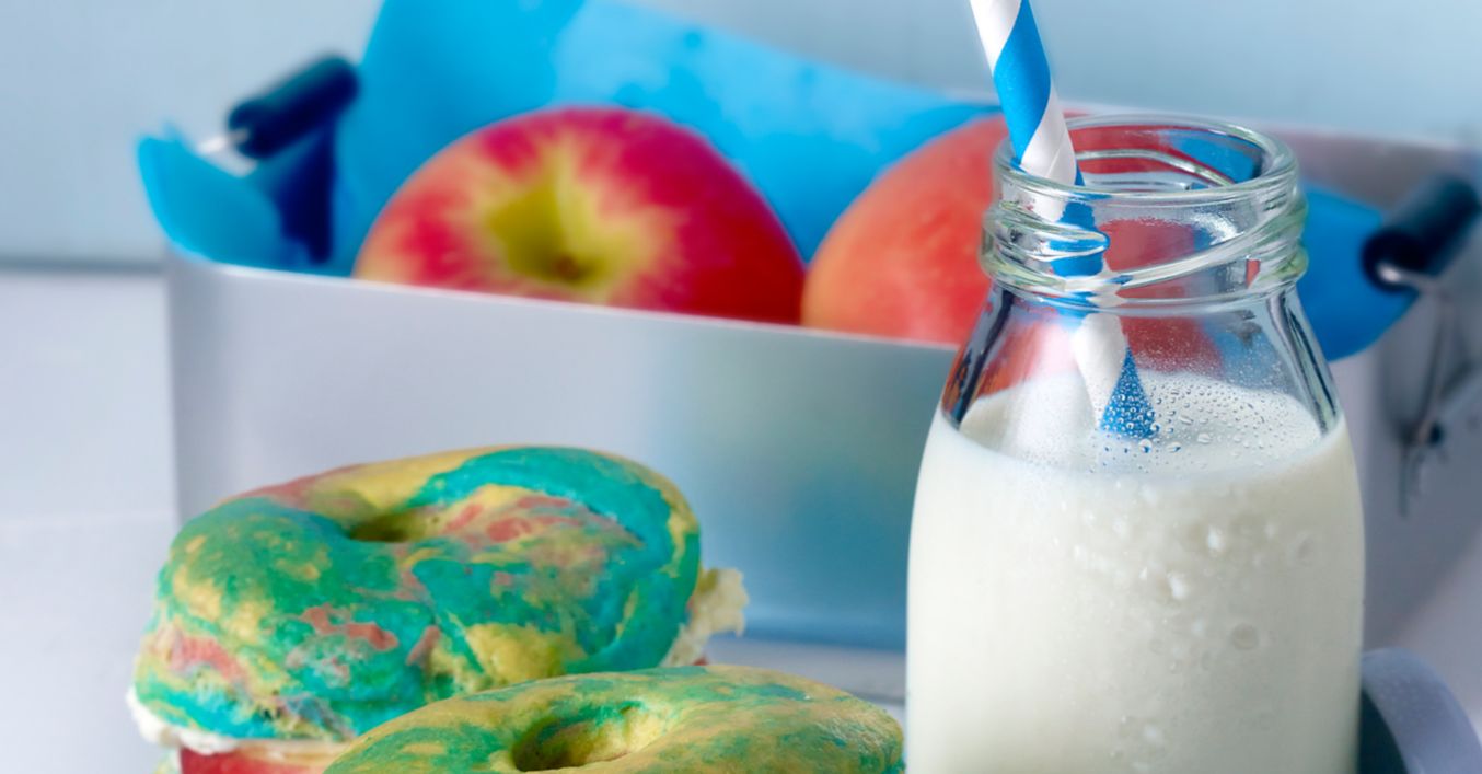 Amestecaţi crema de brânză cu zeamă de lămâie şi adăugaţi miere. Spălaţi merele, curăţaţi-le de sâmburi şi tăiaţi-le în felii groase de cca 1 cm. Tăiaţi covrigii în jumătăți, ungeţi o jumătate cu crema de brânză şi aşezaţi apoi felii de măr. Pentru transport, aşezaţi deasupra celelalte jumătăți şi ambalaţi-i într-o cutie pentru sandvișuri.