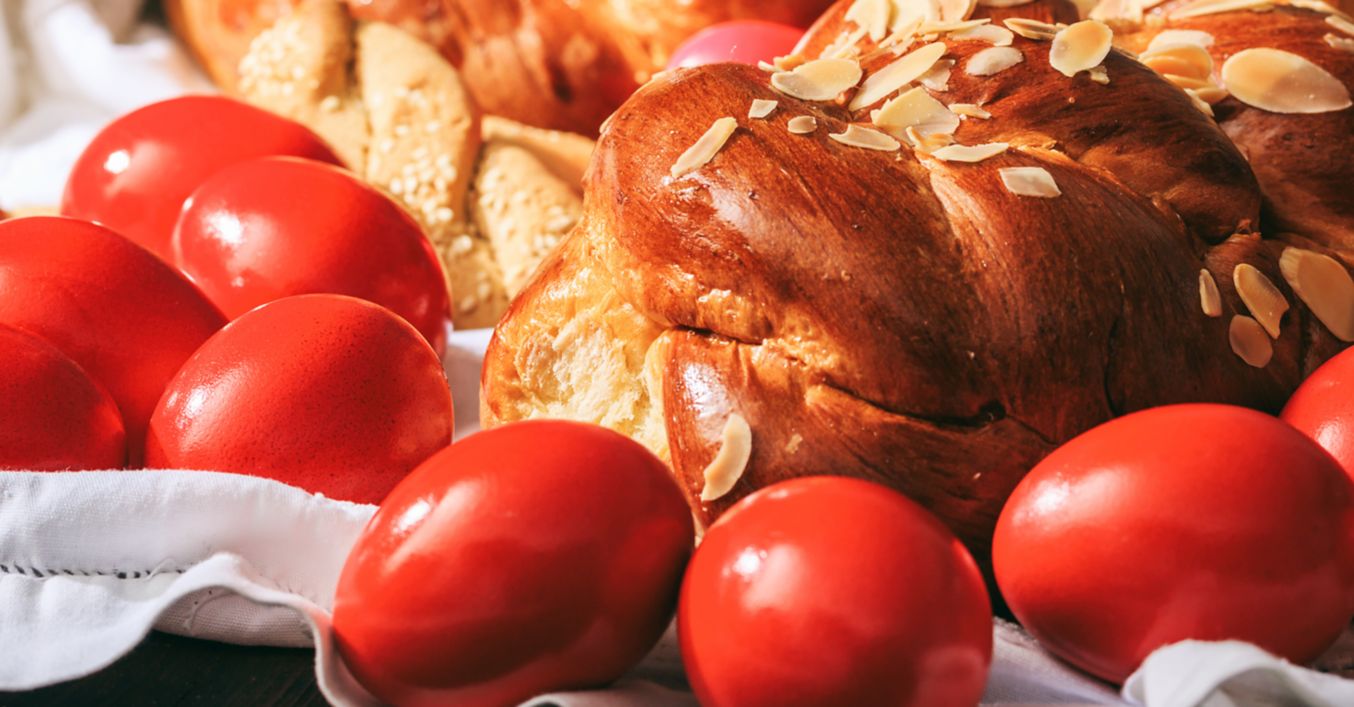 Se mai lasă să crească încă 20 de minute. Cozonacul se unge cu gălbenuș și se presară cu migdale tocate.