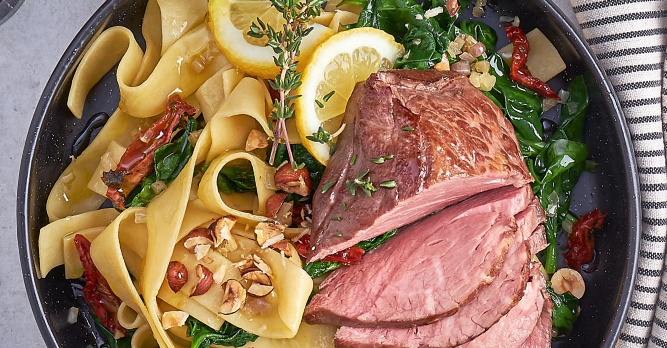 File de vită Sous-Vide cu tăiței panglică de spanac
