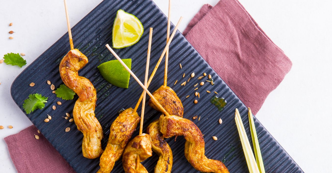 Spală carnea de porc și taie din ea fășii lungi a câte 2 cm grosime. Pune fiecare mini-file pe câte un băț de frigăruie. Unge fiecare frigăruie cu marinata obținută, după care lasă carnea la frigider pentru 2-3 ore.