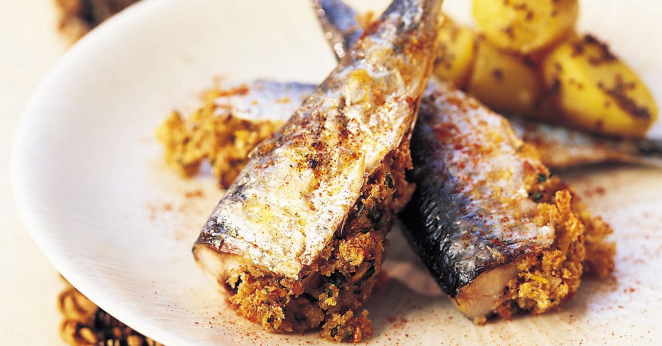 Se combină zeama de lămâie rămasă cu 1/2 lingură de ulei de măsline și 2 vârfuri de cuțit de piper de Cayenne. Se ung peștii cu jumătate din această mixtură. Se pun heringii sub grill și se gătesc 5 minute, sau până când carnea pare a se desprinde ușor de pe oase. Se întorc heringii cu mare grijă, se ung cu restul de mixtură și se gătesc alte 5 minute, până ce sunt pătrunși complet.