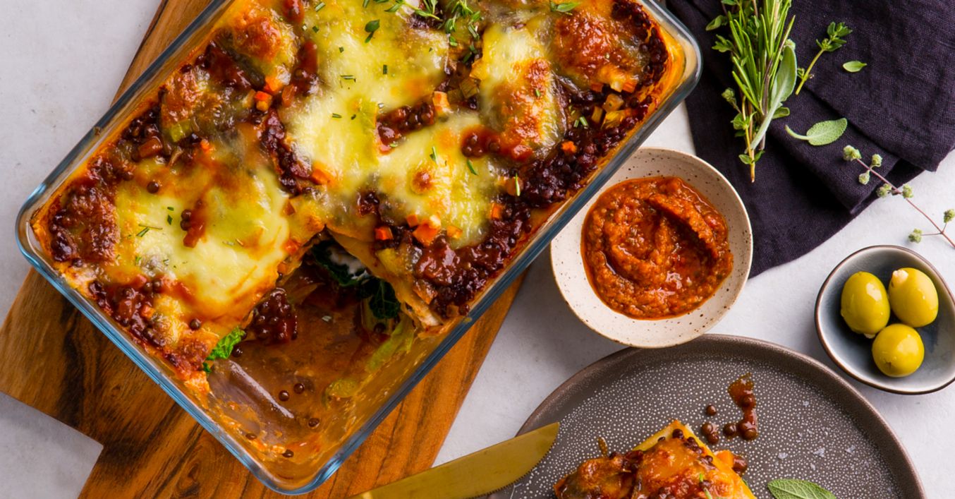 Lasagna de varză creață cu sos bolognese de linte