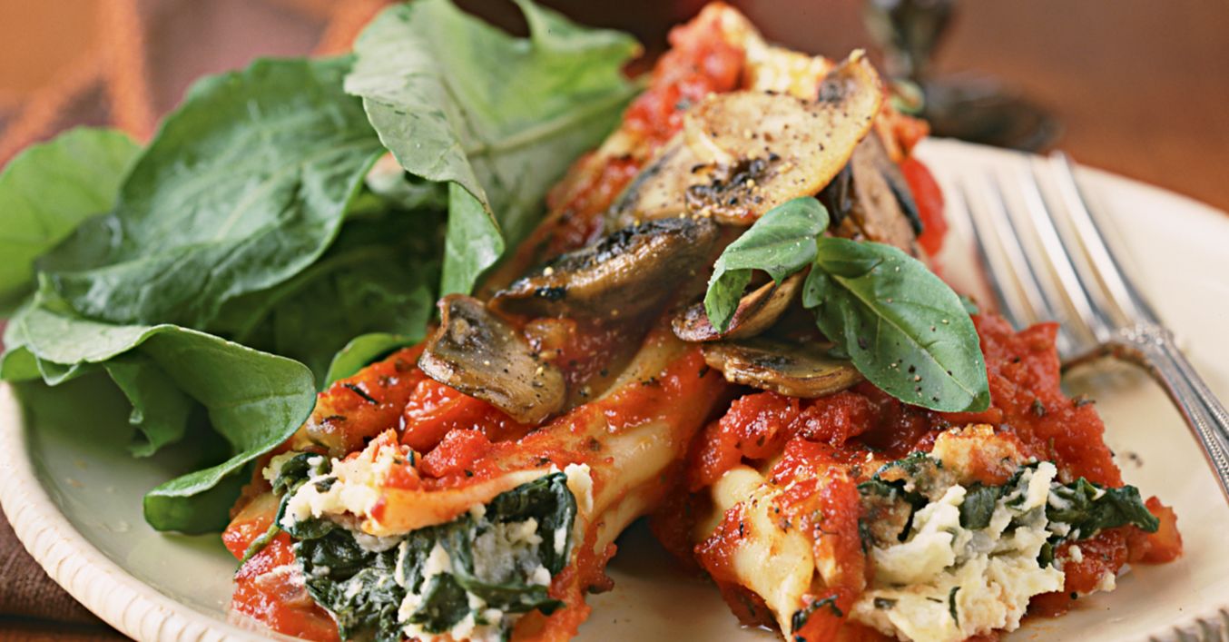 Manicotti umplute cu spanac și cu ciuperci