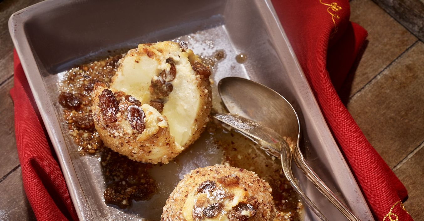 Se amestecă restul de unt cu stafide, miere și ricotta, iar merele se umplu cu acest amestec și se coc în cuptorul preîncălzit la 180 de grade (convecție: 160 de grade) timp de cca 40-45 de minute.