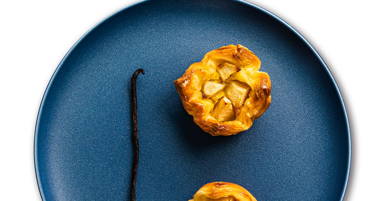 Mini-tartele cu mere și cremă de lapte pot fi servite alături de cu un pahar de vin spumant.