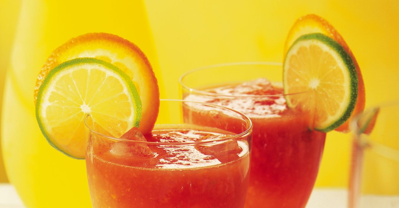 Se umplu patru pahare mari cu gheață pe jumătate. Se completează cu nectarul de roșii și portocale. Se ornează cu felii de portocală și lămâie verde. Se servește imediat.