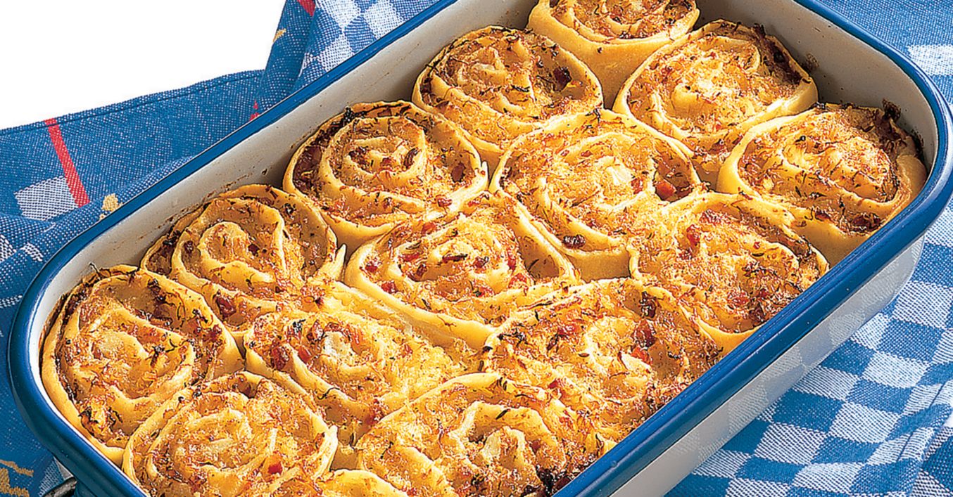 Aluatul se împarte în 4 porții, care se întind pe rând cu mâna pe o pânză presărată cu făină, obținând câte o foaie dreptunghiulară, subțire ca o coală de hârtie. Dreptunghiurile de aluat se ung cu unt. Umplutura se întinde în așa fel pe foile de plăcintă, încât marginile laterale și cea din spate să rămână libere; marginile se umezesc cu supă.