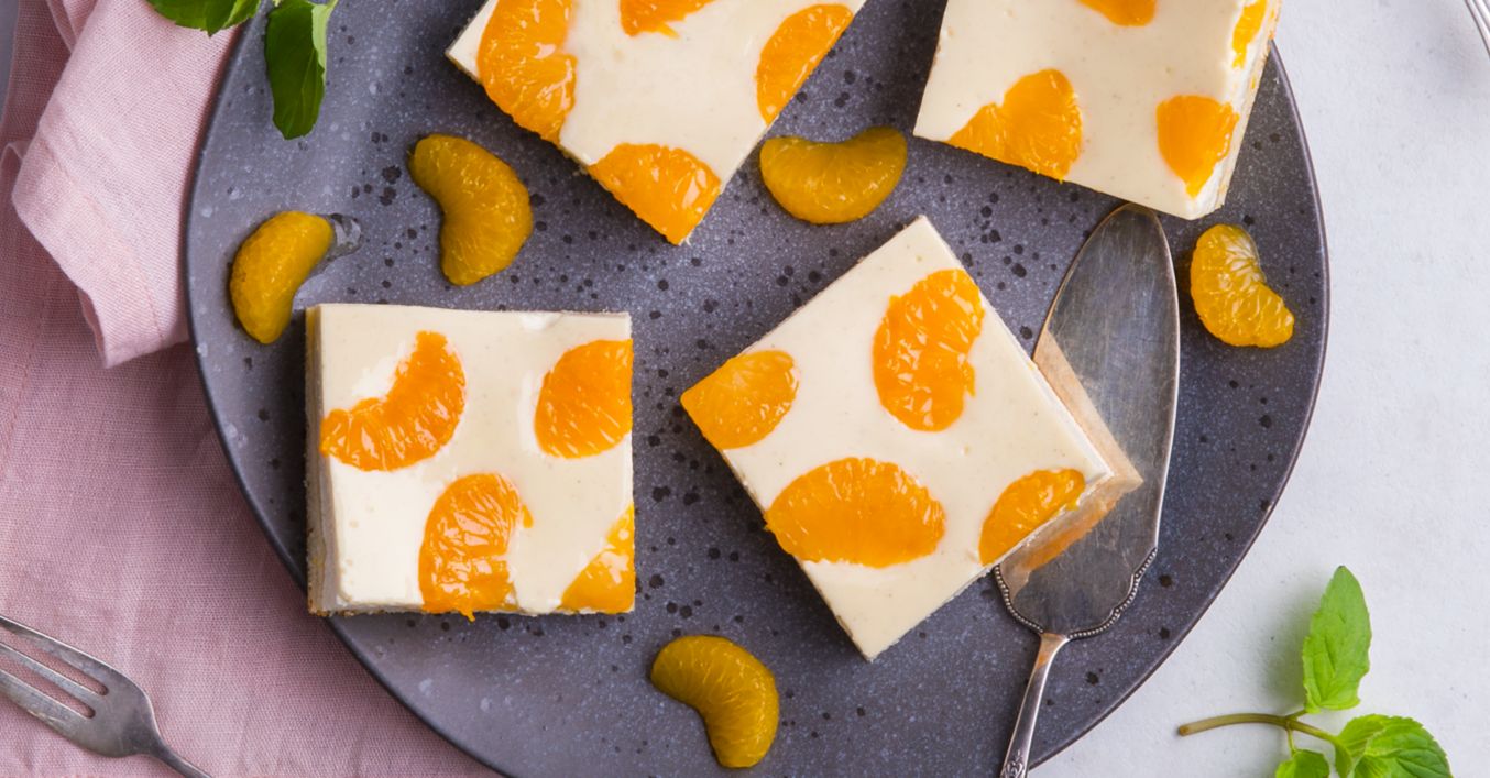 Se întinde aluatul, se așază într-o tavă unsă cu grăsime, se unge cu amestecul de brânză și se pun deasupra mandarine. Se coace în cuptor aprox. 35-40 de minute (Cuptor electric și cu gaz: 180 de grade/treapta 3, aer recirculat 160 grade) și apoi se lasă să se răcească.