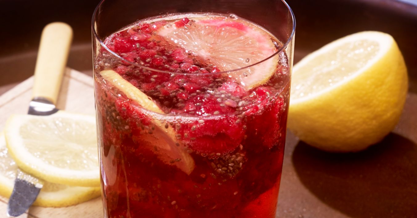 Semințele de chia se amestecă cu 35 ml de apă, se toarnă într-un pahar de cocktail și se lasă la înmuiat aproximativ două ore.