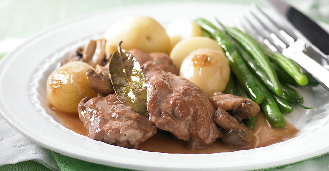 Pui brezat în vin roșu