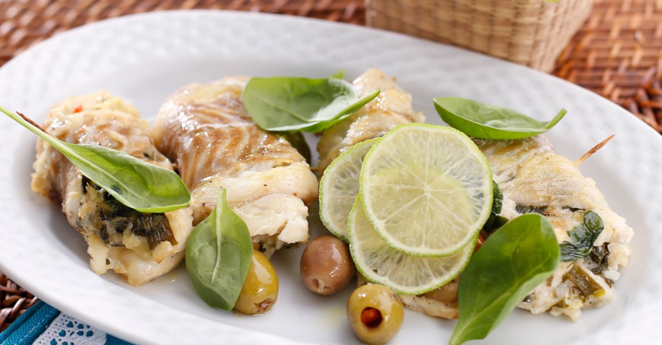 Rulouri de pește cu spanac și țelină