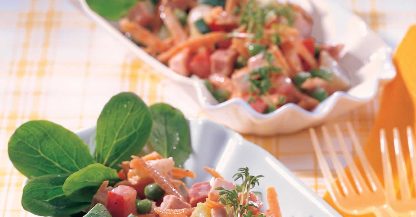 Salată colorată cu șuncă și legume