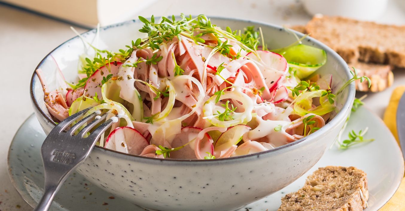 Salată de șuncă presată, ridichi și castravete
