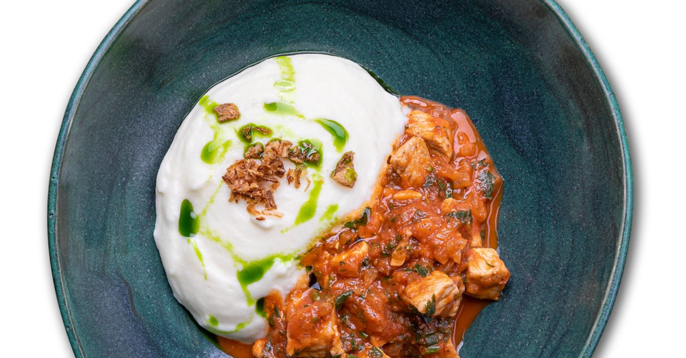 Pe o farfurie întinsă, alături de tochitura de carne se adaugă spuma de mălai grișat peste care se presară după gust pătrunjel verde și frunze de mentă proaspete.