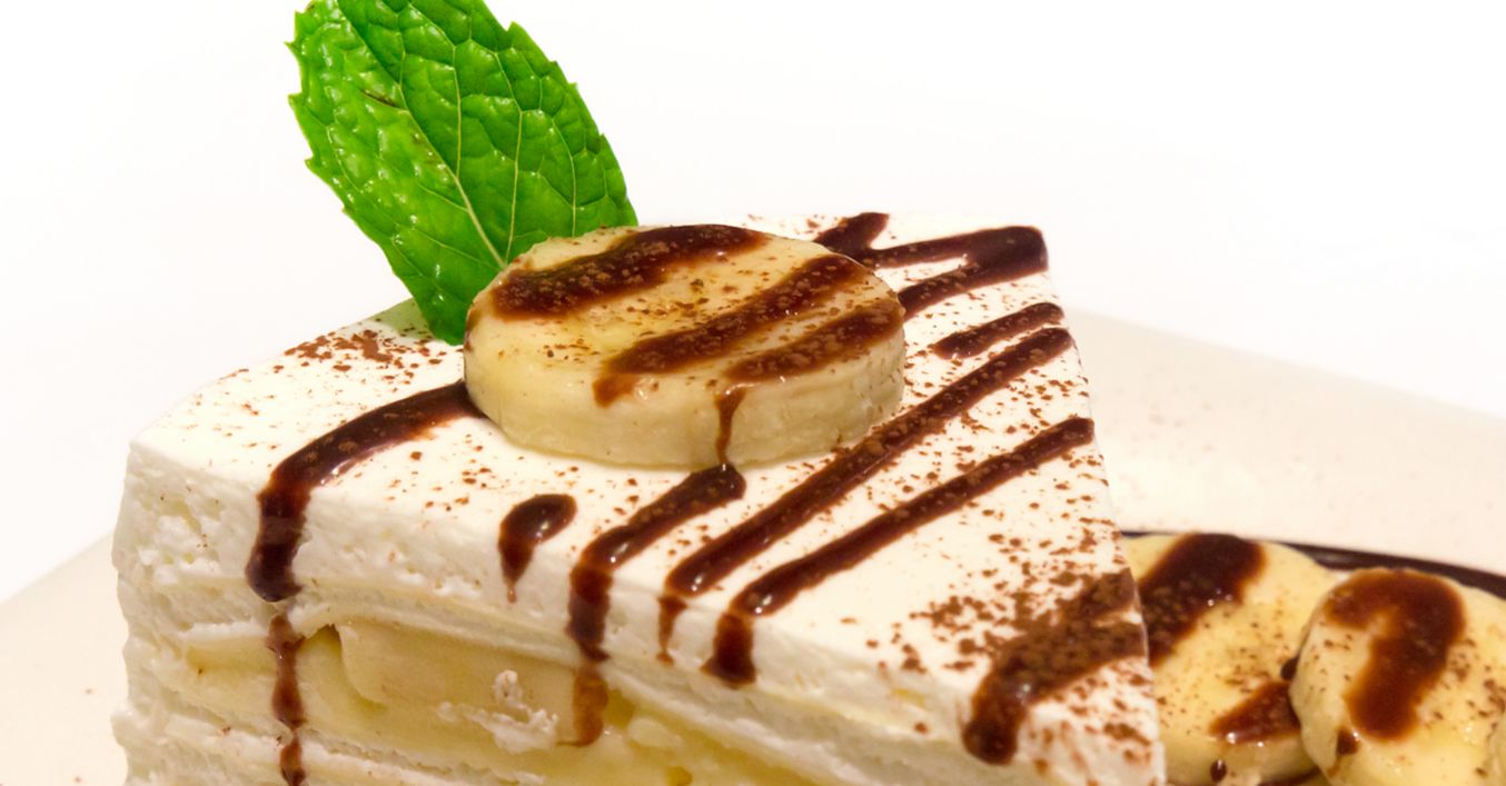 ntre foile de bezea se pun rondele de banană. Se ornează cu rondele de banană și ciocolată topită.