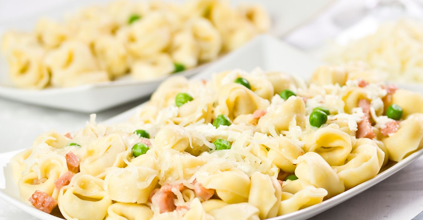 Când este aproape fiartă, se fierb și tortellini în apă cu sare timp de 5-7 minute, respectând instrucțiunile de pe pachet. Se încinge cuptorul la 180°C.
